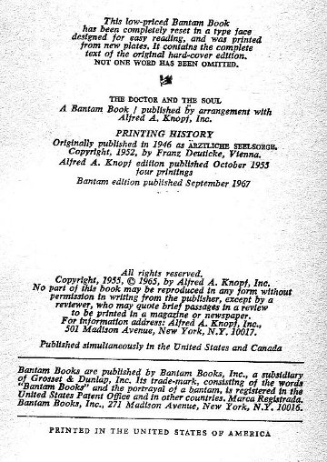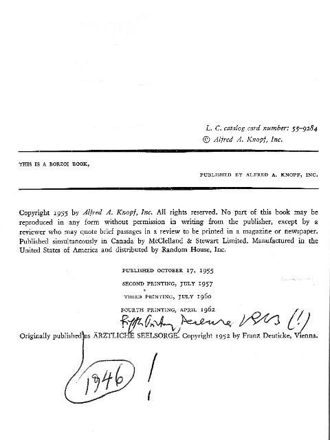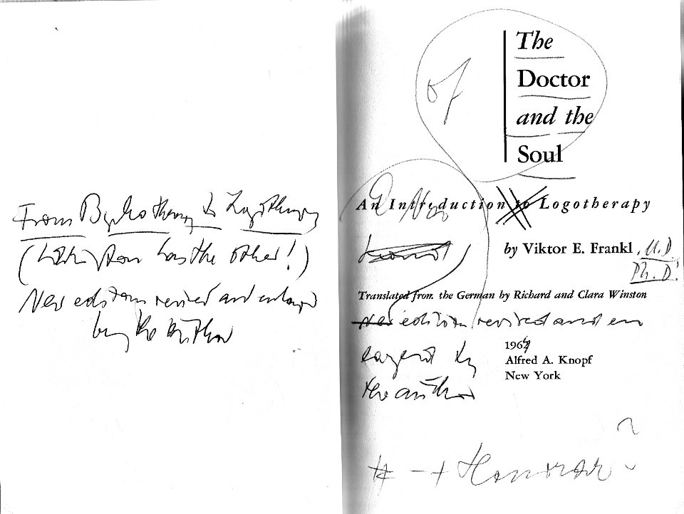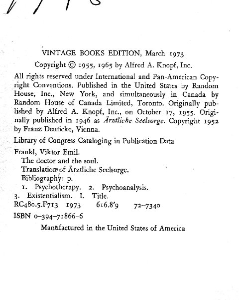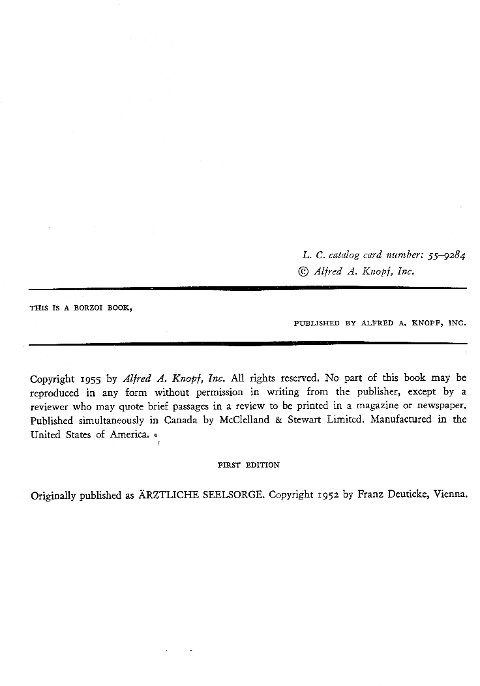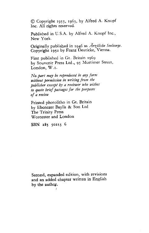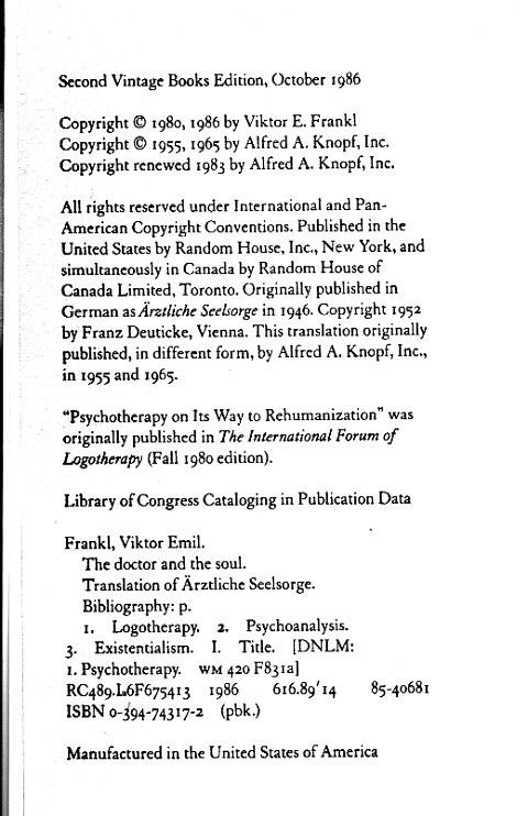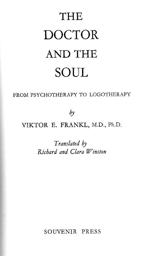 | Ärztliche Seelsorge. ----- The Doctor and the Soul. From Psychotherapy to Logotherapy. |