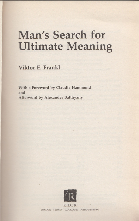 | Man's Search for Meaning ----- Man's Search for Meaning. An Introduction to Logotherapy. |