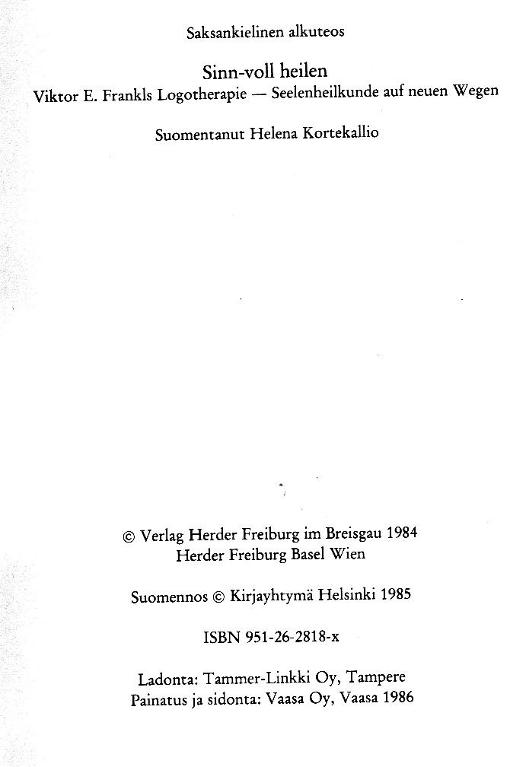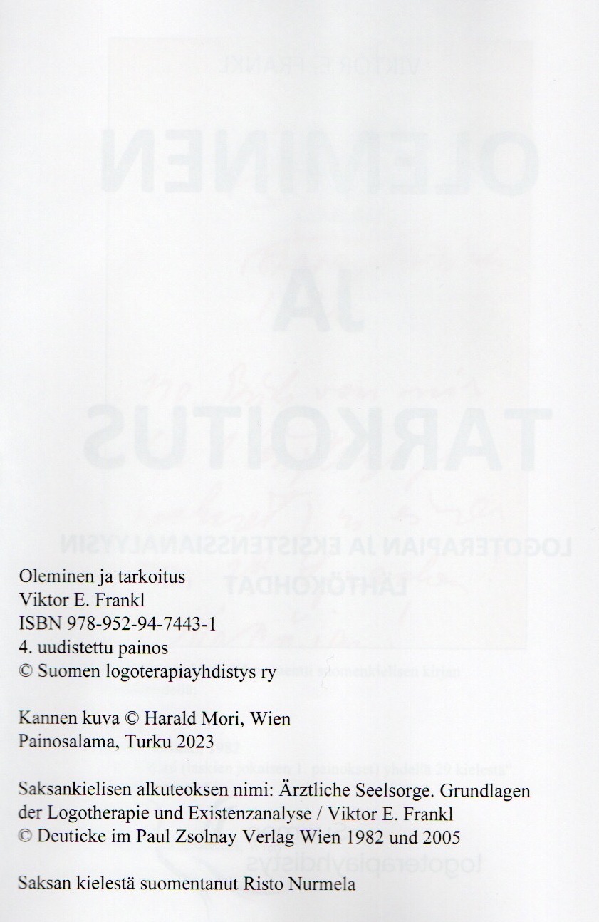 Suomen logoterapiayhdistys, Turku. 2014-2023 ISBN 978-952-94-7443-1 |