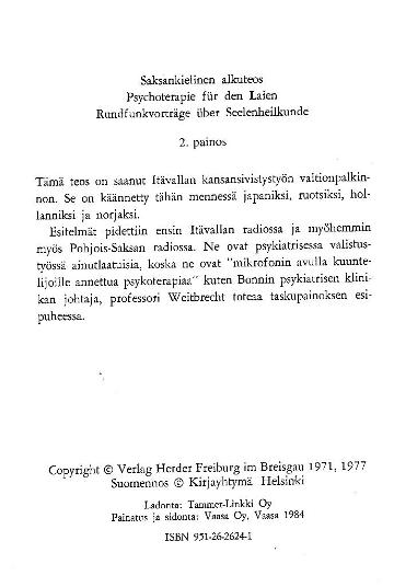 Otava, Keuruu/Helsinki 1980 ISBN 951-1-05932-7 |
