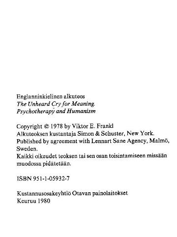 | The Unheard Cry for Meaning. ----- Elämän tarkoitusta etsimässä. |