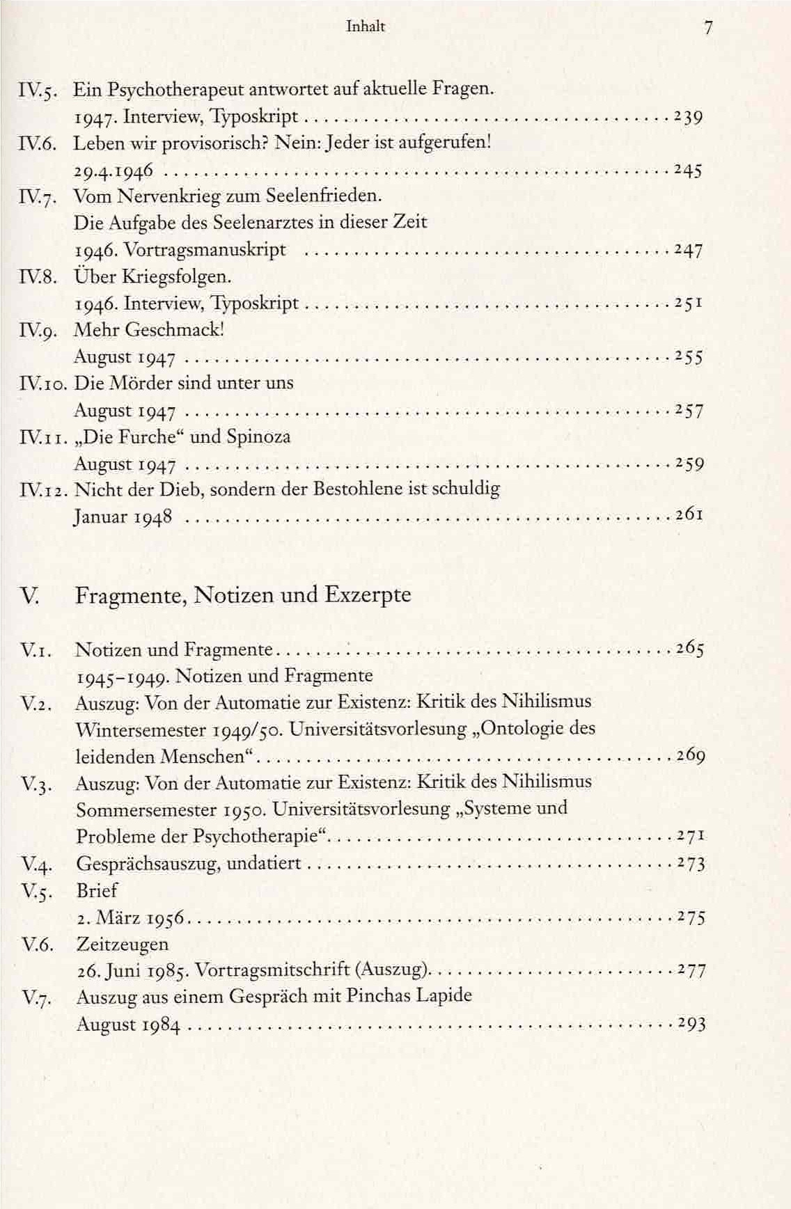 *** enthält auch die ersten 7 Radiovorträge, die vordem in DPIA (Die Psychotherapie im Alltag, Psyche 1952) versammelt waren. |