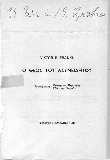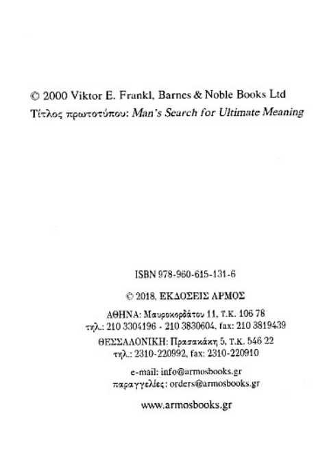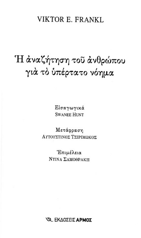 | Man's Search for Meaning. ----- To noima tis zois. |