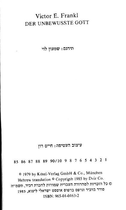 | Der unbewusste Gott. ----- Ha'el halo'mouda. Psichoterapia ve'dat. |