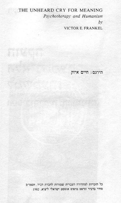 | The Unheard Cry for Meaning. ----- Ha'zeakah halo nishmaat le'mashmaut. |