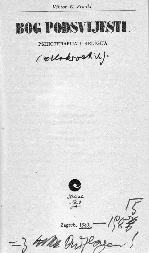 | Das Leiden am sinnlosen Leben. Psychotherapie fuer heute (Herder, Freiburg-Basel-Wien 1989). ----- Patnja zbog besmislena zivota. Psihoterapija za danasnje vrijeme. |