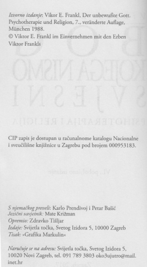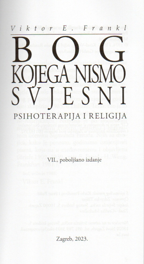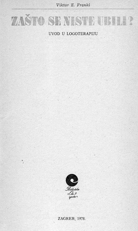 | "Ein Psychologe erlebt das KZ" und "Basic Concepts of Logotherapy". ----- Zasto se niste ubili? Uvod u logoterapiju. |