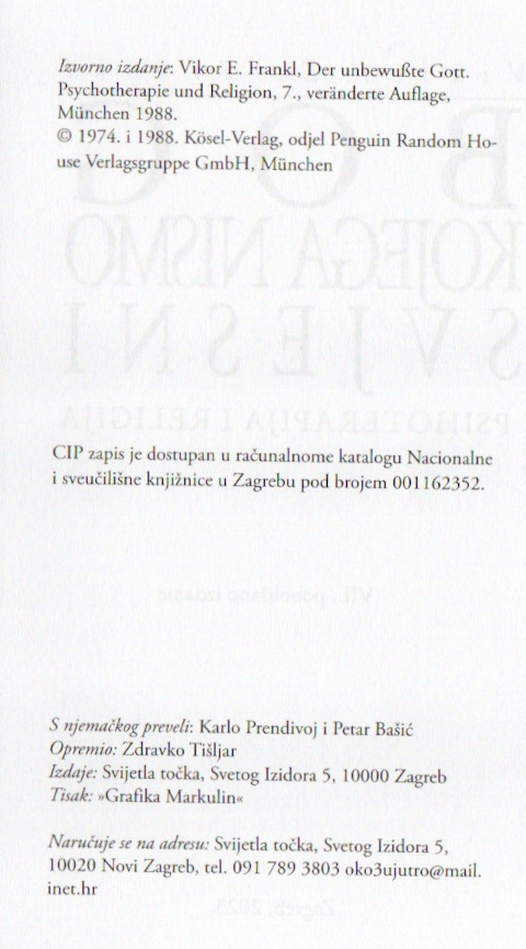 | Der unbewusste Gott. Psychotherapie und Religion. ----- Bog kojega nismo svjesni. Psihoterapija i religija. |