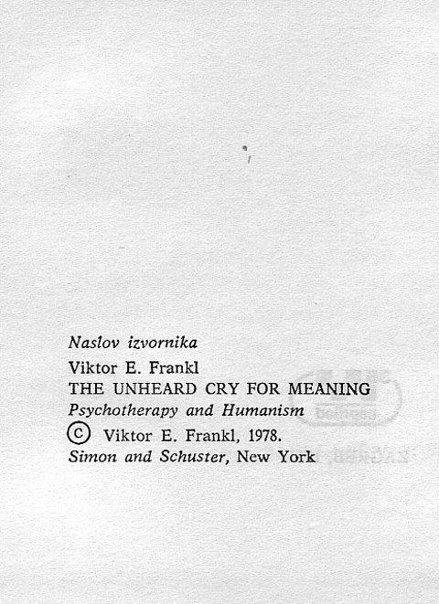 | Man's Search for Meaning. ----- Čovjekovo traganje za smislom. |
