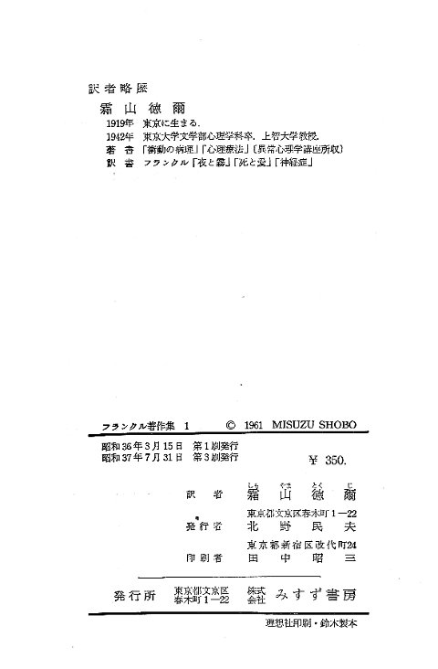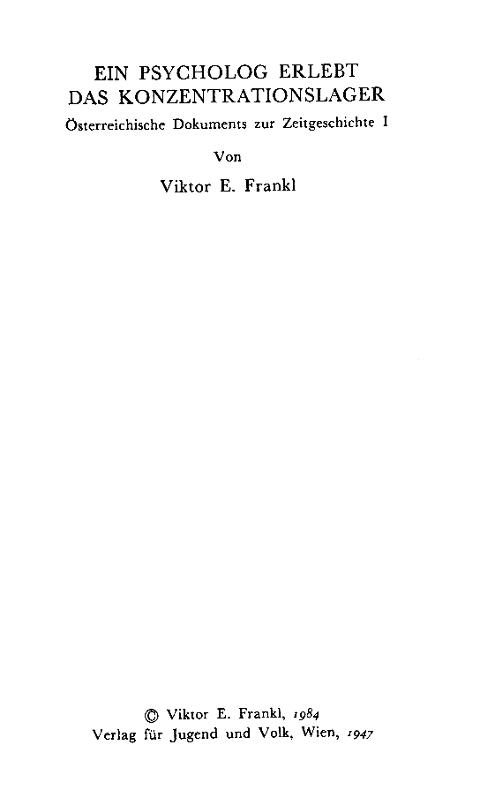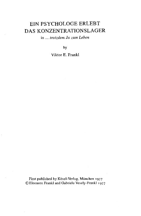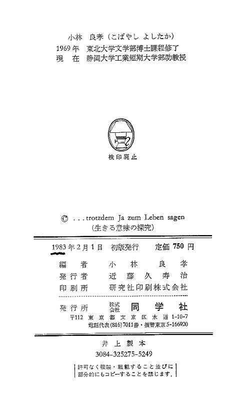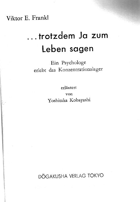 | Commentary to "...trotzdem Ja zum Leben sagen" ("Ein Psychologe erlebt das KZ"). ----- Ikiru imi no tannkyu. |