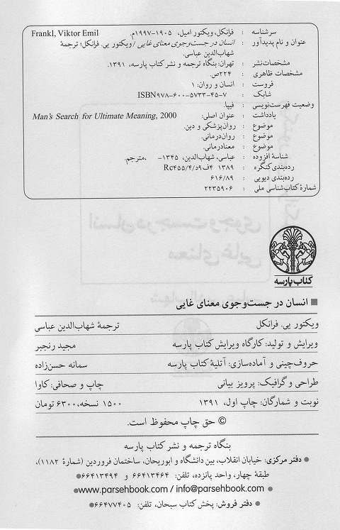 | Man's Search for Meaning. ----- Insan dar jostojooye ma'na. |