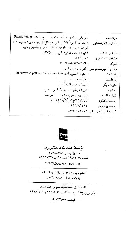 | Der unbewusste Gott (Man's Search for Ultimate Meaning). ----- Jostojooye M'anaye ghaayee. |