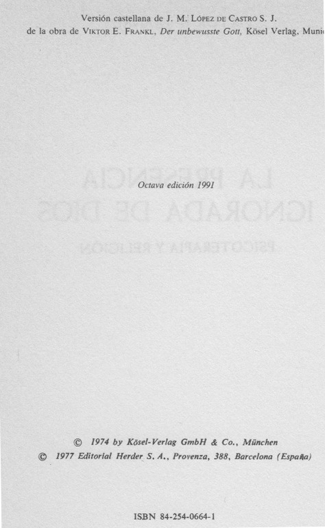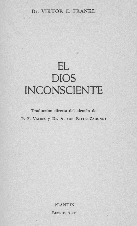 | Der unbewusste Gott. ----- El hombre en busca del sentido ultimo. |