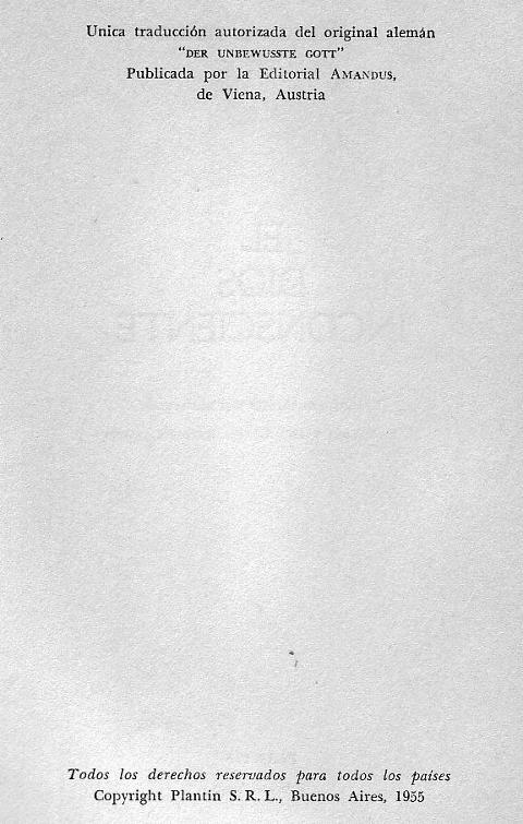 | Der unbewusste Gott. ----- La presencia ignorada de Dios. Psicoterapia y religion. |