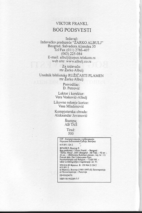 | Sharko Albulj 1994, ISBN 978-86-901085-4-8 |