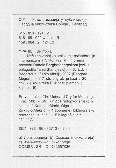 | The Unheard Cry for Meaning. ----- Nečujni vapaj za smislom. |