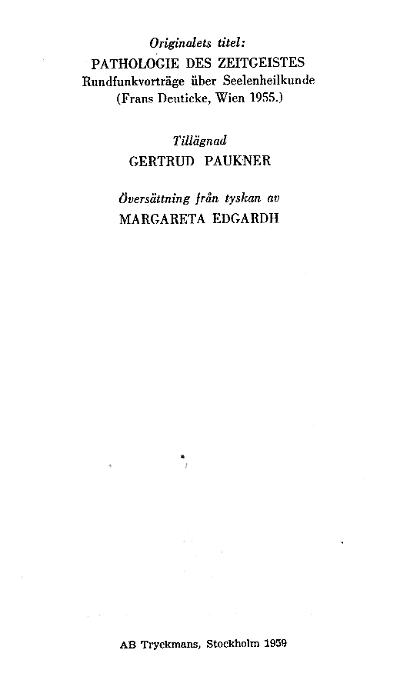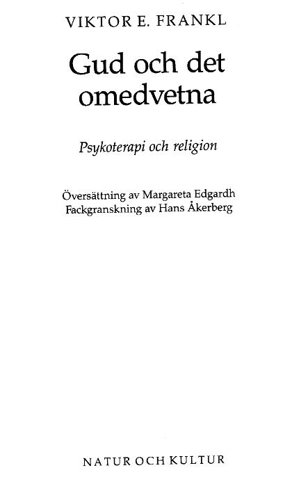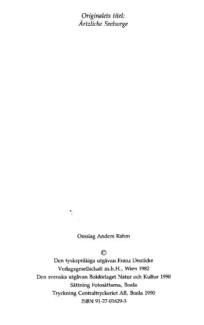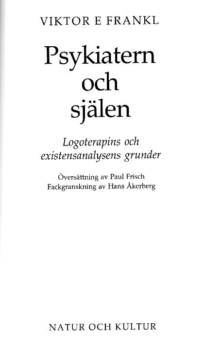 | Ärztliche Seelsorge. Grundlagen der Logotherapie und Existenzanalyse. ----- Psykiatern och själen. Logoterapins och existensanalysens grunder. |