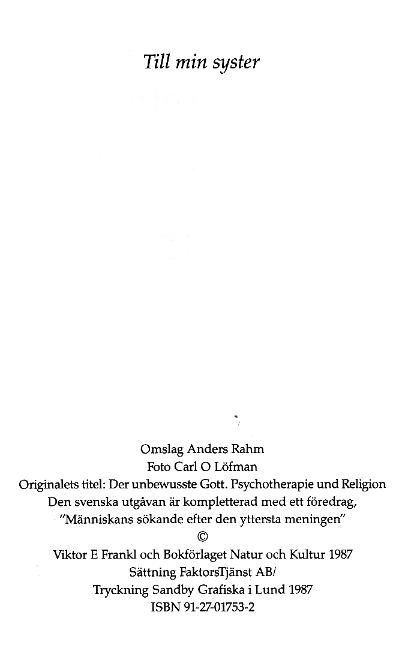 | Der unbewusste Gott. ----- Gud och det omedvetna. Psykoterapi och religion. |